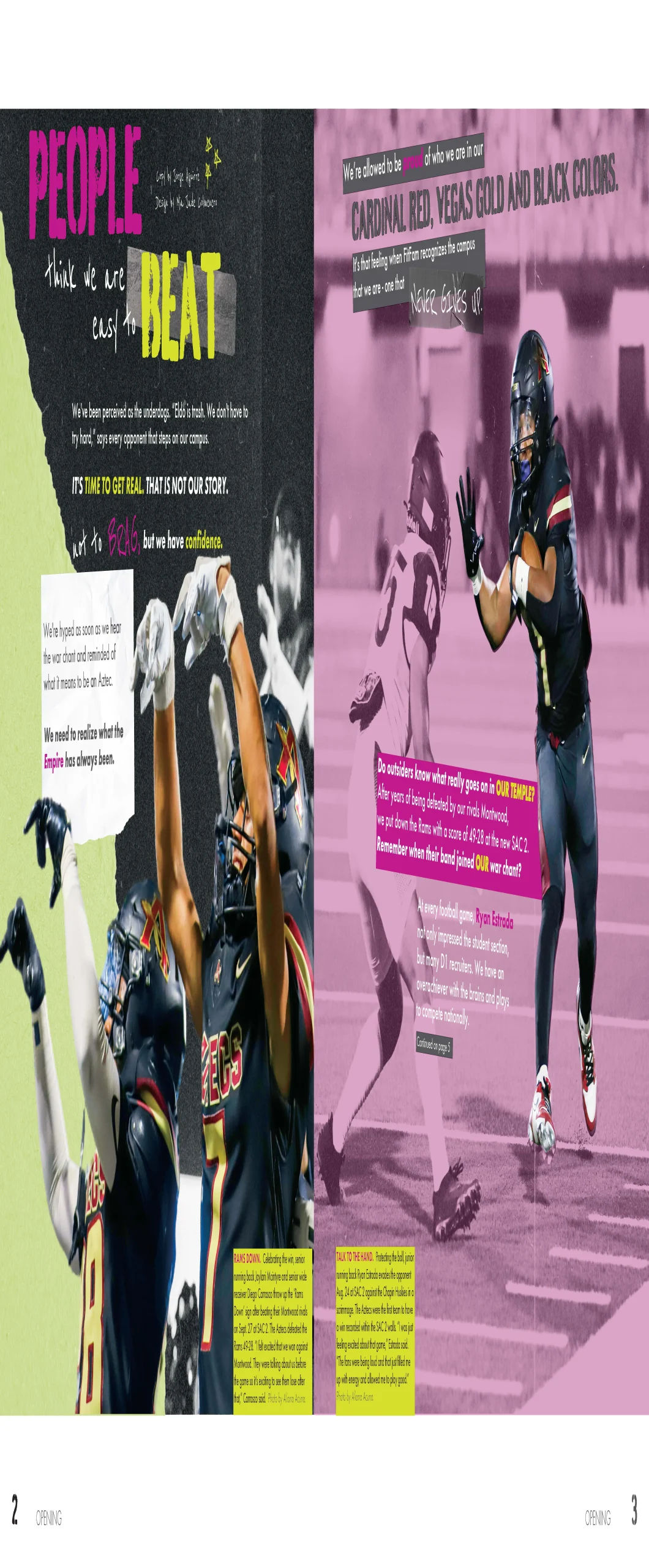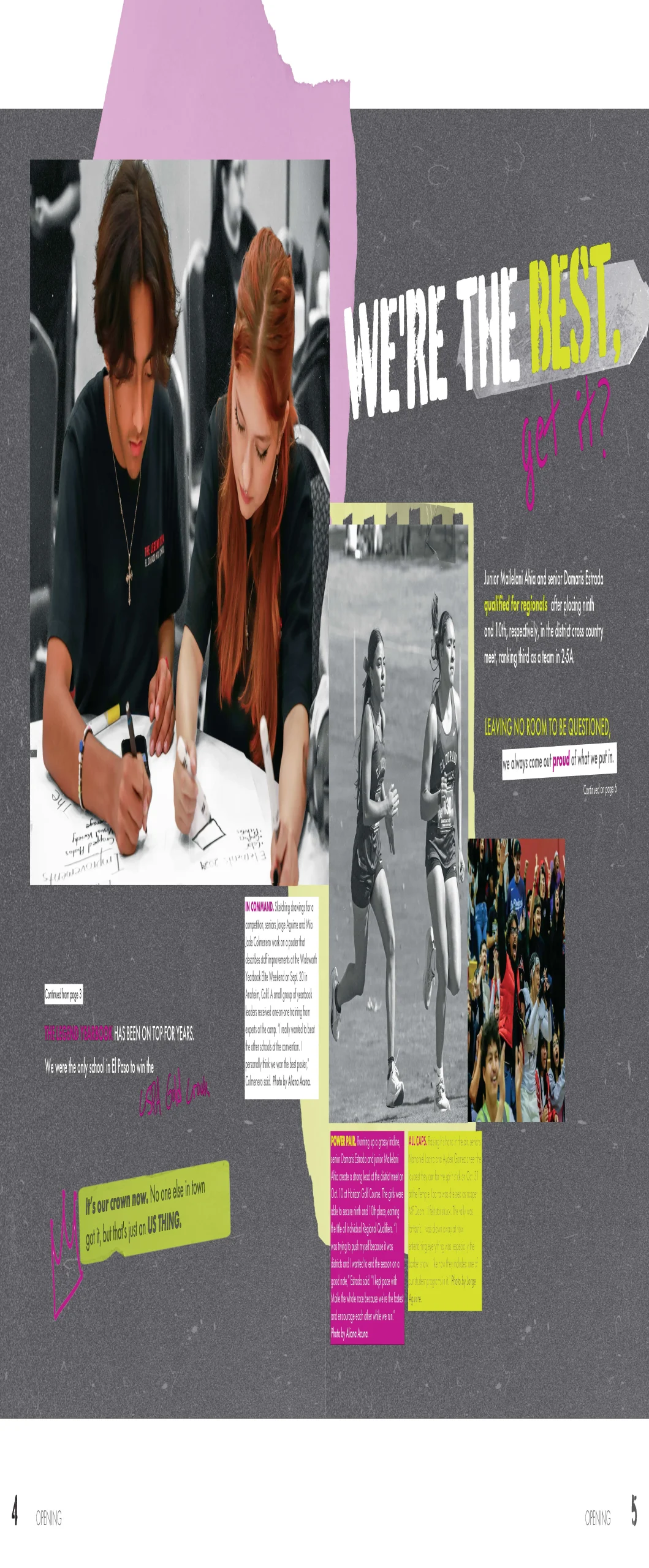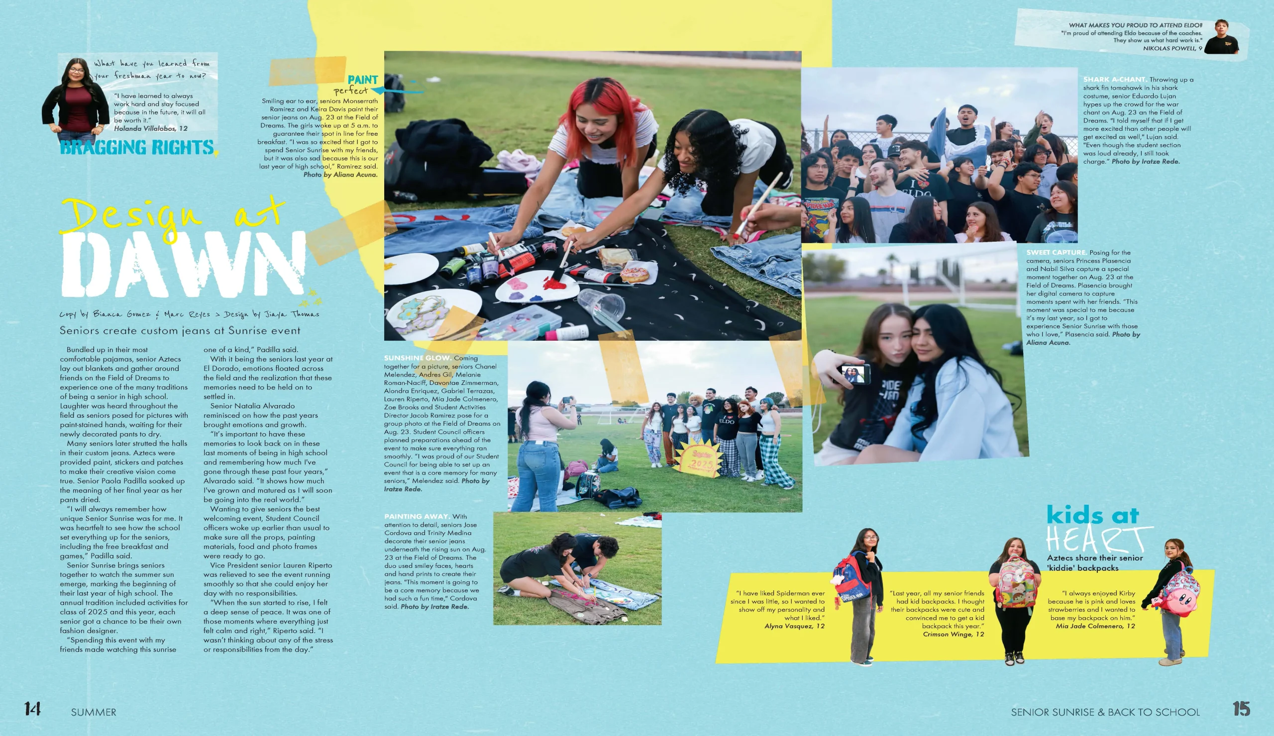 El Dorado showcases confident theme copy that reflects school identity. Their writing maintains a strong voice while avoiding editorializing. Headlines are specific and paired with subheads that clarify focus. Feature stories include engaging leads, meaningful student quotes and secondary coverage packages that expand understanding without repeating information.