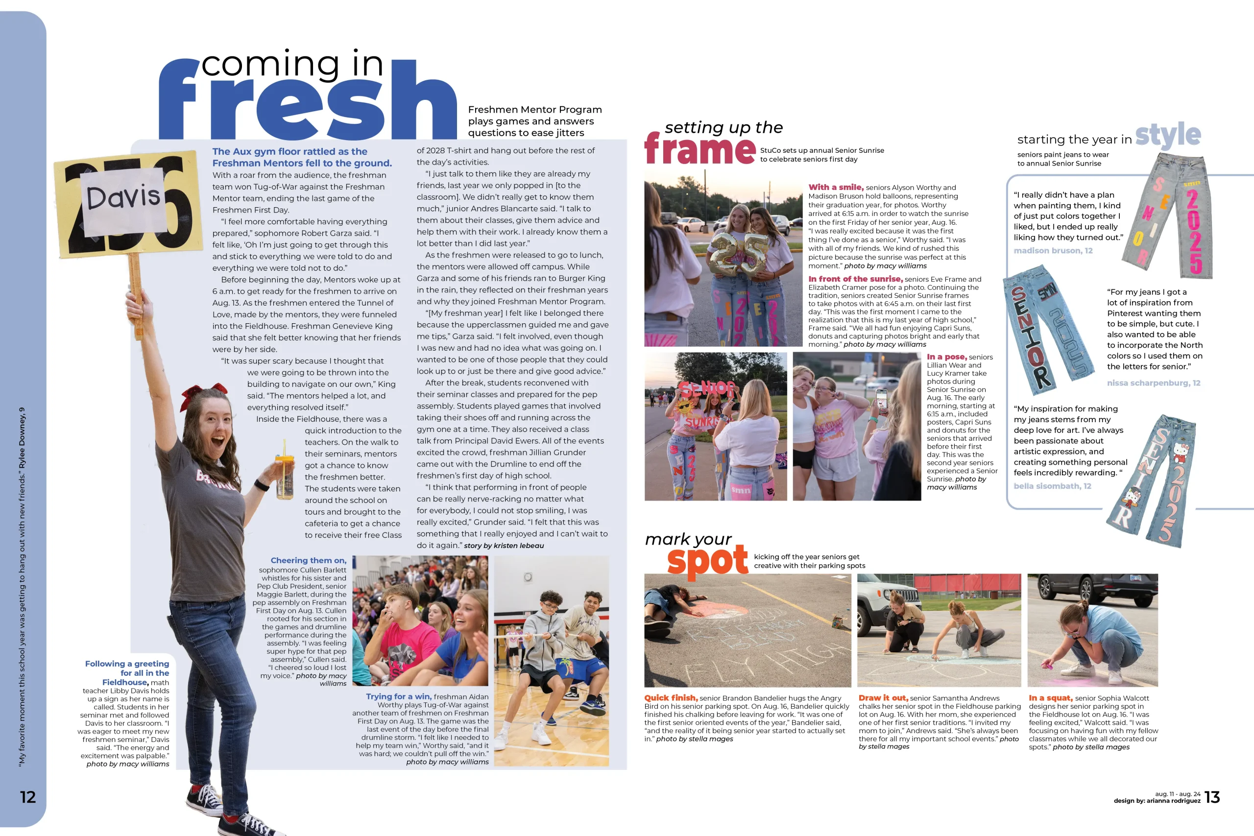 Dreyfoos demonstrates how theme writing can establish tone without explaining the theme outright. Their opening copy uses structure and style to reflect the student experience. Throughout the book, stories follow clear journalistic structure. Leads establish focus. Transitions provide context. Quotes carry emotion and authenticity. The writing is deliberate, people-centered and rooted in interviews.