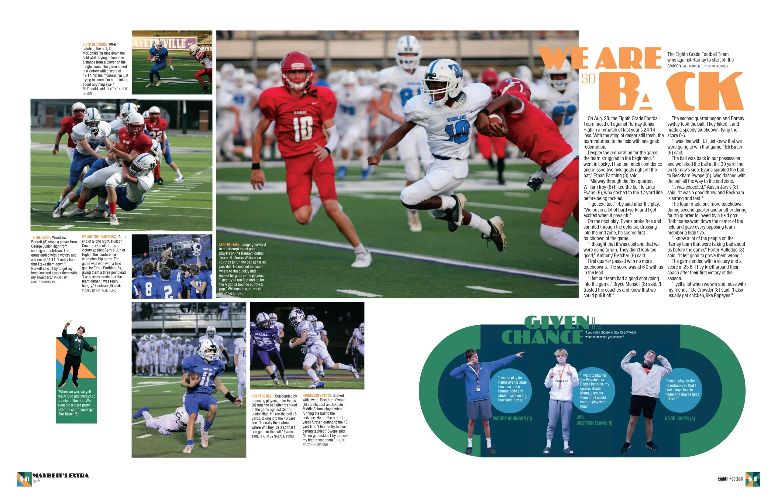 The Round-Up stands out because its photography works seamlessly with design. Dominant sports images tie directly to the headline angle, while supporting photos build the full story of the event. Leading lines move the reader toward copy blocks and action shots consistently capture the ball in play to reinforce coverage.